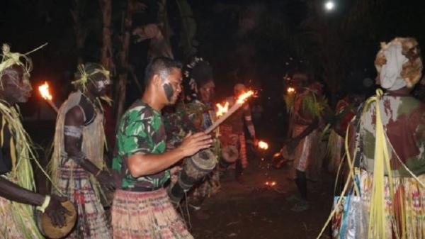 Masyarakat Suku Kanum bernyanyi dan memainkan alat musik (Tifa) dengan memegang obor dipimpin langsung Kepala Suku Kanum Jeremias Dimar. Di sana, warga dan prajurit TNI tampak sangat akrab dan harmonis.