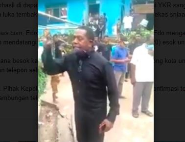 Dalam video berdurasi 02.21 menit yang diunggah netizen bernama Yudith Urbinas pada laman Facebook-nya pada Sabtu (29/8/2020) lalu, terlihat Edo kondologit yang mengenakan pakaian serba hitam sangat emosional.