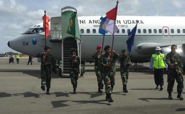 MERAUKE, iNews.id – Setelah melalui perjalanan panjang, pawai Bendera (Flag Relay) Merah Putih dengan menggunakan Pesawat Boeing 737 A-7304 tiba di Merauke, Provinsi Papua, Kamis (4/10/2018). Dengan demikian, Flag Relay Merah Putih dari Sabang sampai Merauke yang dimulai sejak tanggal 28 September 2018 berakhir sukses, untuk menandai puncak peringatan HUT ke-73 TNI yang jatuh pada tanggal 5 Oktober.