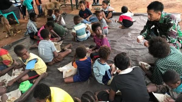 MERAUKE, iNews.id – Satuan Tugas Pengamanan Perbatasan Republik Indonesia-Papua Nugini (Satgas Pamtas RI-PNG) menggelar syukuran HUT Ke-74 TNI bersama dengan warga Kampung Yanggandur di Pos Yanggandur, Distrik Sota, Merauke, Papua. Para prajurit TNI dari Batalyon Infanteri Mekanis Raider (Yonif MR) 411/Pandawa Kostrad ini akrab saat bercengkrama dengan masyarakat dan makan bersama pada Minggu (6/10/2019).