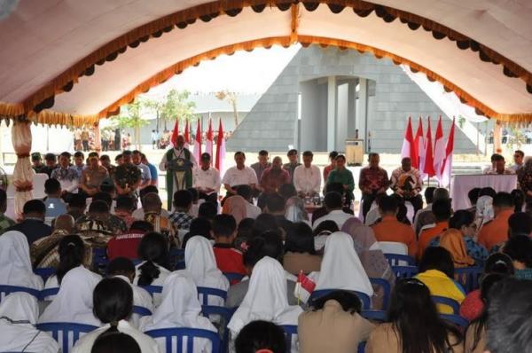 Peresmian Monumen Kapsul waktu secara simbolis ditandai dengan penandatanganan prasasti. Selanjutnya, Presiden bersama 34 anak-anak pelajar di Kabupaten Merauke membawa kapsul waktu ke atas monumen untuk disimpan hingga tahun 2085.