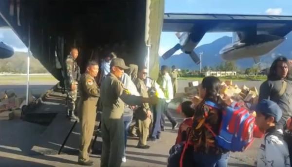 Pesawat hercules TNI AU terus membawa para pengungsi yang ingin meninggalkan Kota Wamena.