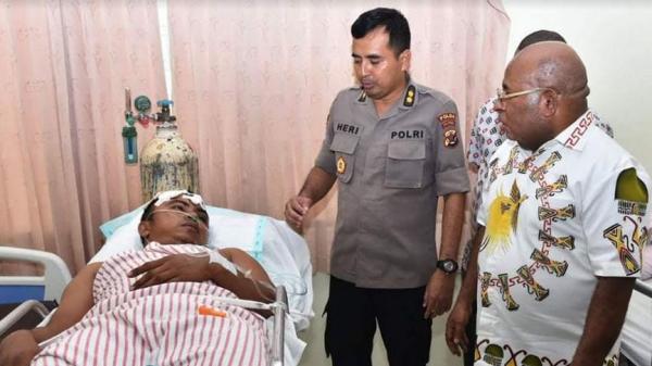 Sebagai bentuk dukungan, Gubernur Papua Lukas Enembe bersama Kapolda Papua Irjen Pol Alberth Rudolf Rodja dan Pangdam XVII/Cenderawasih Mayjen TNI Herman Asaribab mengunjungi ke-6 anggota yang terluka, Selasa (24/9/2019).