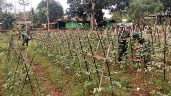 Berbagai macam jenis sayur-sayuran seperti kacang panjang, sawi, kangkung dan tomat ditanam dalam lahan kosong di sekitar Pos Kaliwanggo Satgas Yonif MR 411/Pandawa Kostrad, Distrik Sota, Merauke, Papua.