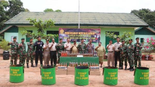 Dansatgas Pamtas RI-PNG Yonif MR 411/Pandawa Kostrad Mayor Inf Rizky Aditya mengatakan, pemusnahan miras ini dilaksanakan di halaman Pos Kout. Di mana Wakil Komandan Satgas Mayor Inf Ilham Datu Ramang memimpin langsung kegiatan pemusnahan tersebut.